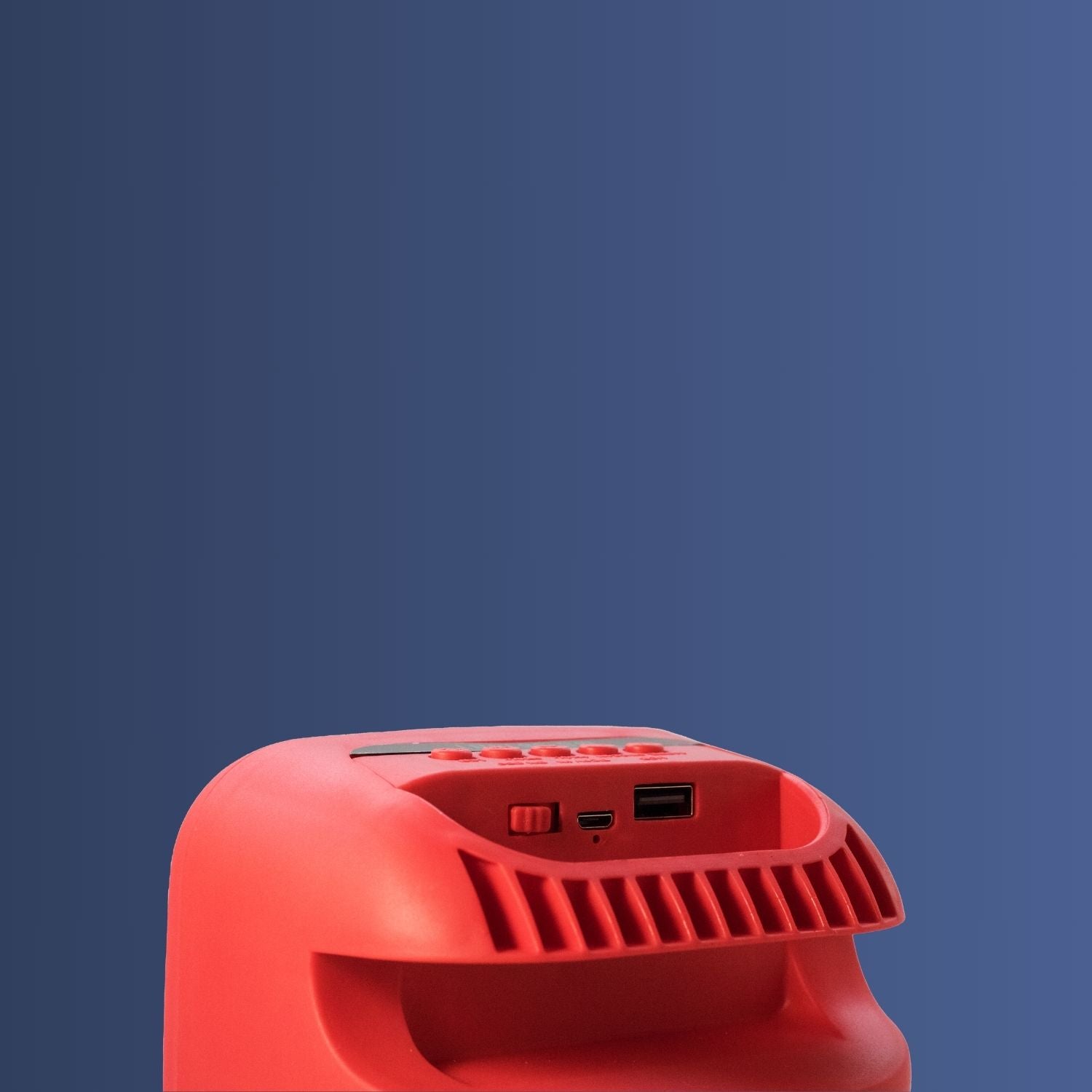 Хуманизираните бутони Ви позволяват лесно да контролирате силата на звука, да пропускате песни, да сменяте радиостанции, да превключвате от радио на bluetooth или usb флашка, да сменяте режима на светлината и да включвате/изключвате тонколоната.